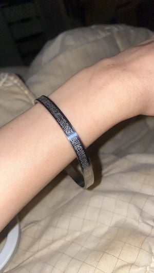 This Islamic bangle bracelet is engraved with Ayat ul-Kursi (Surah Al-Baqarah, 2:255) — one of the most revered Quranic verses known for its spiritual significance, divine blessings, and constant reminder of Allah’s greatness.