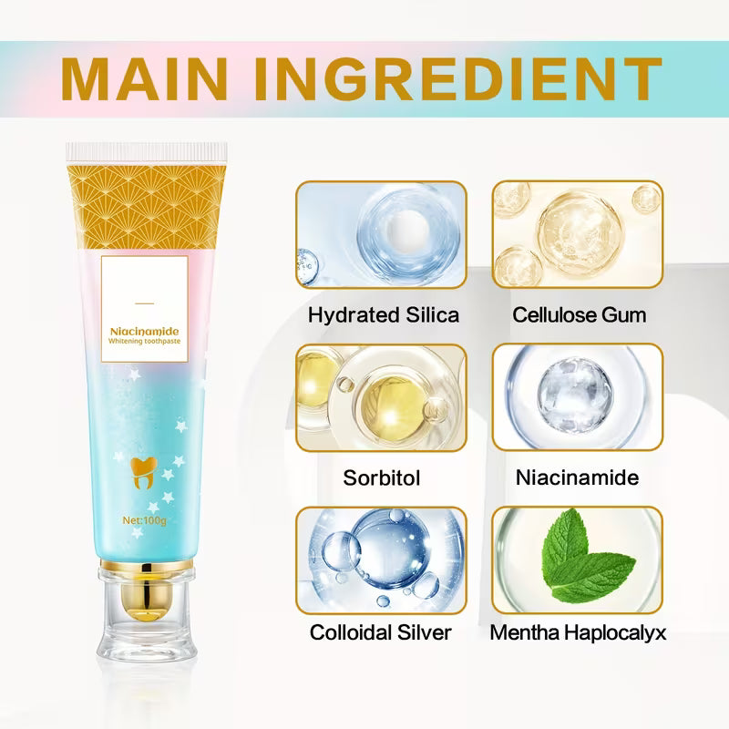 ✔ Niacinamide (Vitamin B3) Infusion – Supports gum health and contributes to a clearer, more radiant smile.